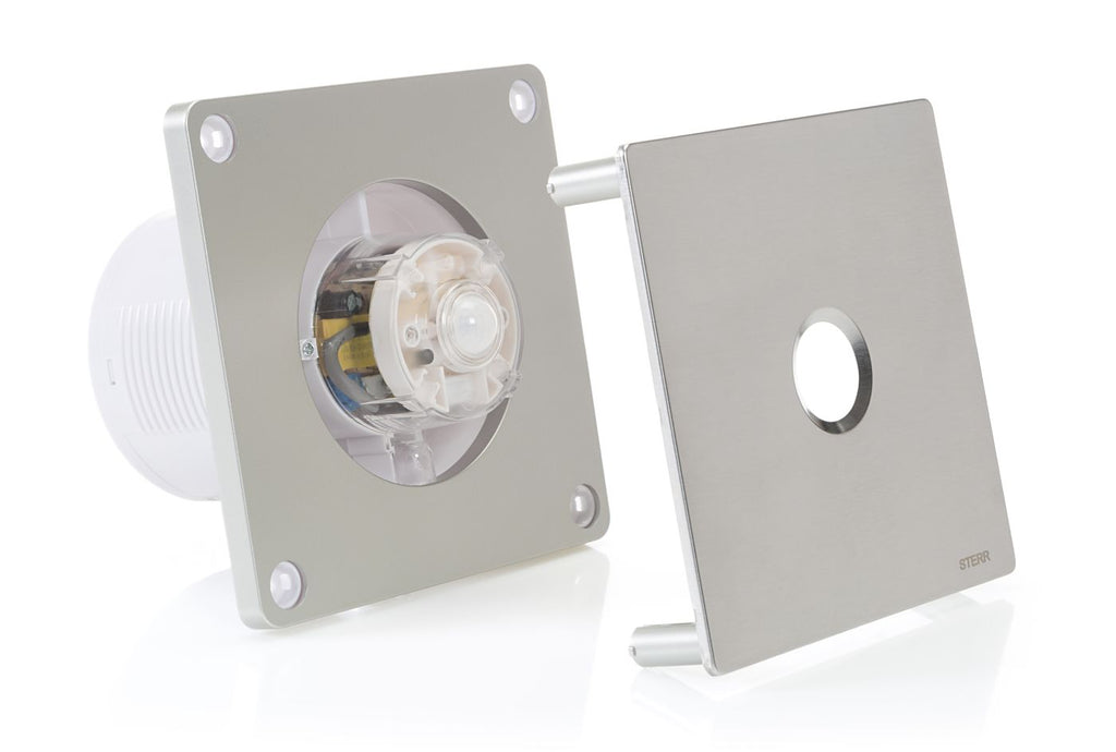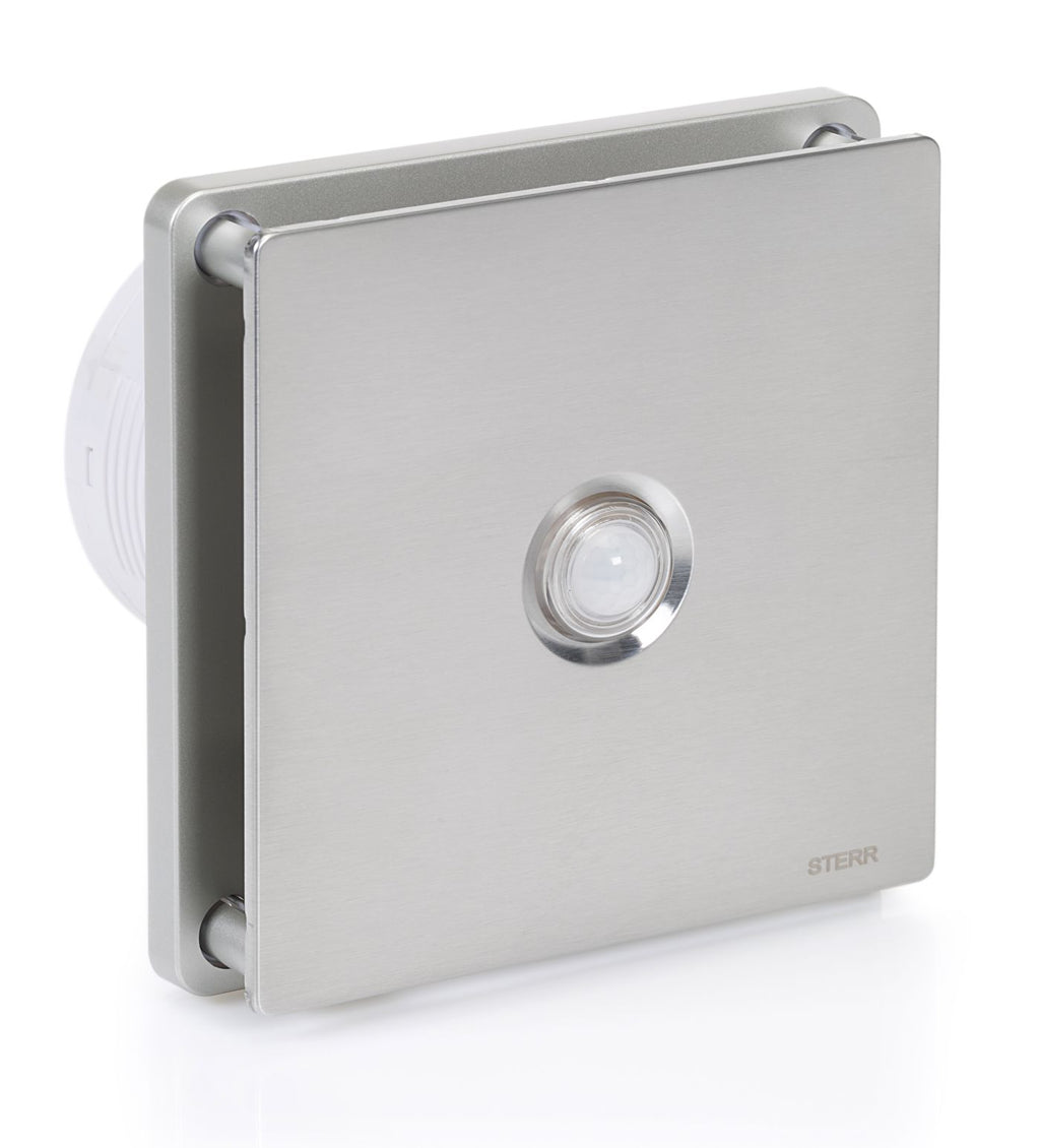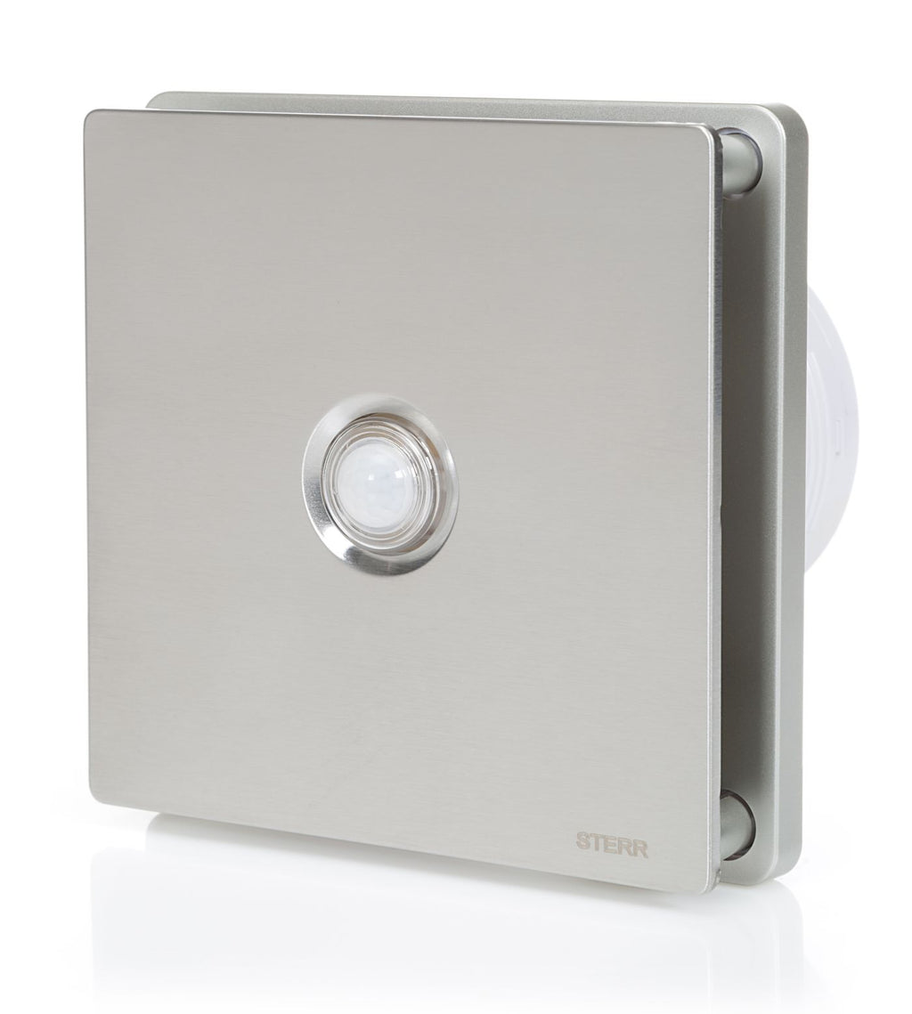 BFS100P-S – Tichý kúpeľňový ventilátor s PIR senzorom pohybu poskytujúci automatickú aktiváciu vetrania do kúpeľní a toaliet.