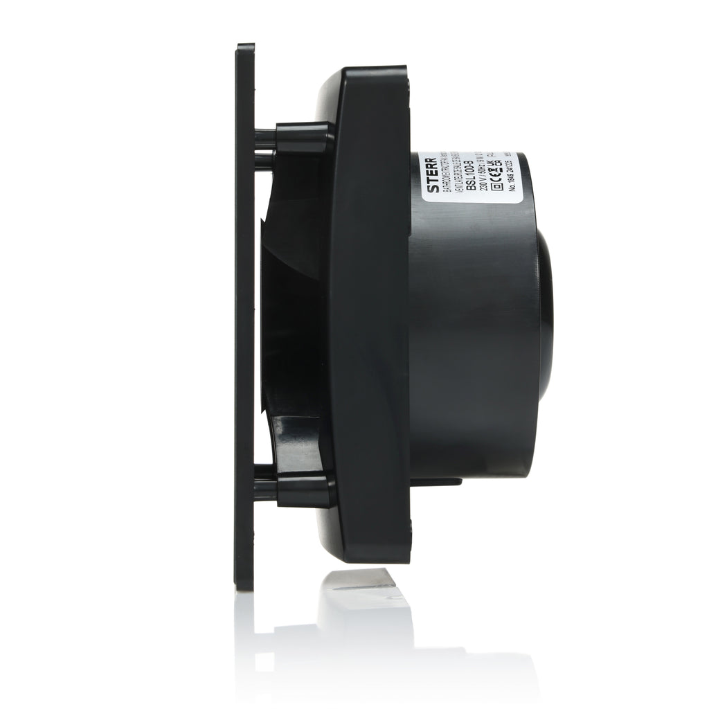 BSL100-B – Kompaktný kúpeľňový ventilátor s krátkou prírubou 46 mm, ideálny pre plytké dutiny v stene. Poskytuje spoľahlivé vetranie do kúpeľní a toaliet.