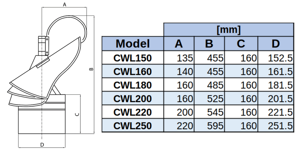 CWL200 – Otáčavá komínová čiapka navrhnutá na ochranu komína pred nepriaznivými poveternostnými podmienkami a zlepšenie účinnosti ťahu s možnosťou otáčania 360°.