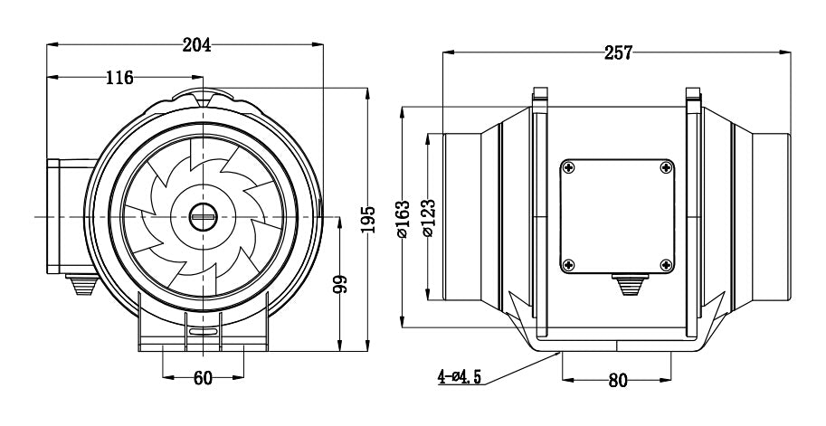 Väčšie potrubné ventilátory sú navrhnuté pre vetracie systémy vyžadujúce vysoký prietok vzduchu a tlak na dlhých potrubiach. Sú vhodné pre priemyselné, komerčné a veľké obytné budovy, vrátane skladov, dielní, kancelárii, reštaurácií a verejných zariadení. Tieto ventilátory zabezpečujú efektívnu výmenu vzduchu, odstránenie tepla, pachov a vlhkosti a spoľahlivý výkon v náročných prostrediach.