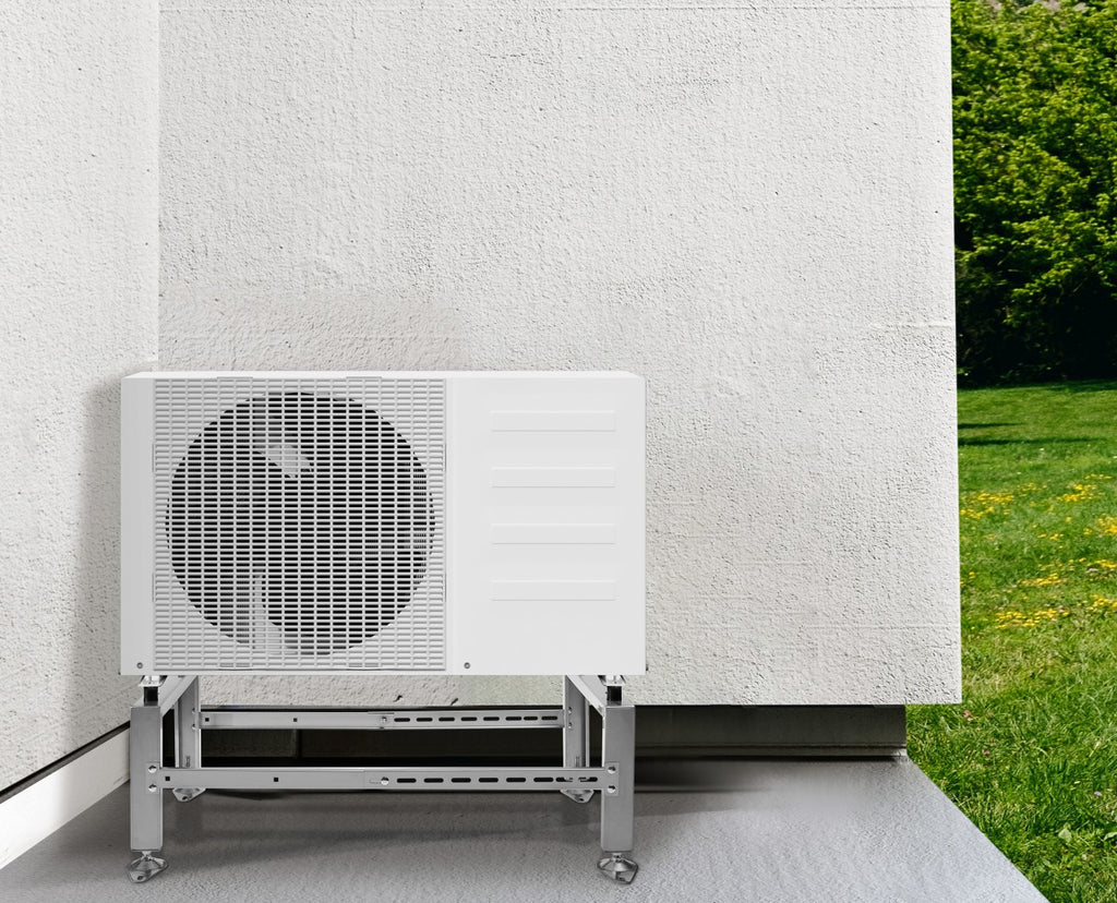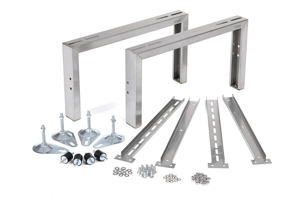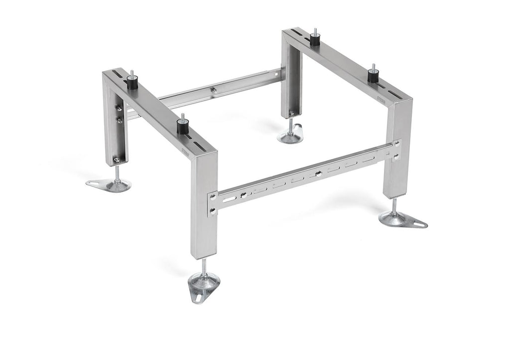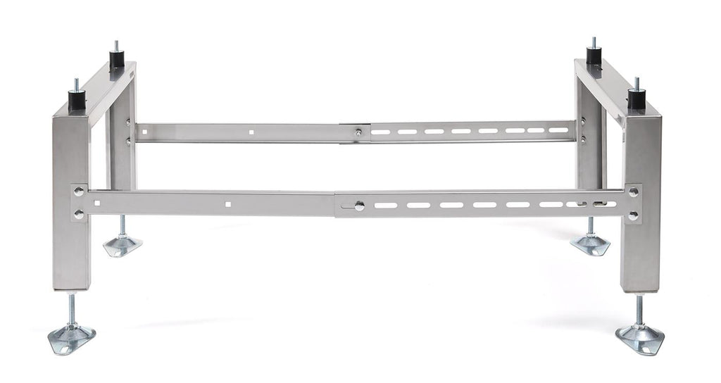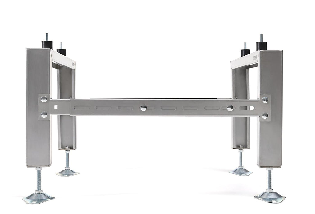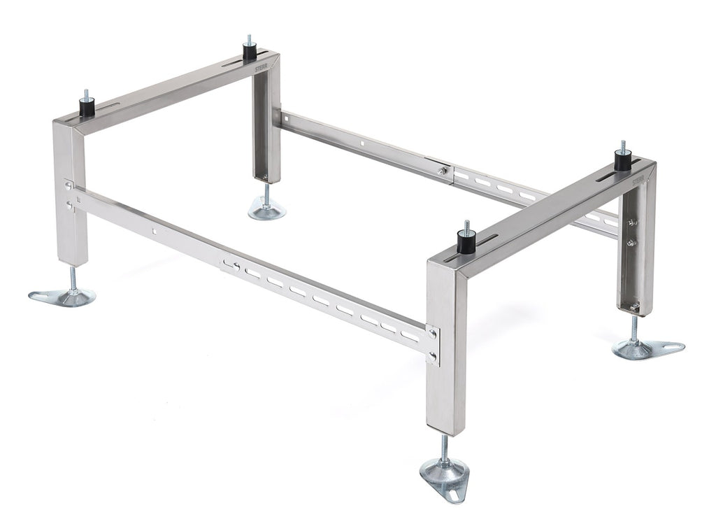 HSA500 – Profesionálny podlahový stojan pre klimatizáciu alebo tepelné čerpadlo s nastaviteľnými rozmermi (dĺžka 600-1040 mm, šírka 560 mm, celková výška 300 mm + 90 mm nohy, šírka inštalácie 280-535 mm, hĺbka inštalácie 540-975 mm) a impozantnou nosnosťou až 500 kg (materiálové testy ukazujú až 700 kg). Vyrobené z vysoko kvalitnej nehrdzavejúcej ocele hrúbky 2 mm (trieda 304) zabezpečujúcej maximálnu stabilitu.