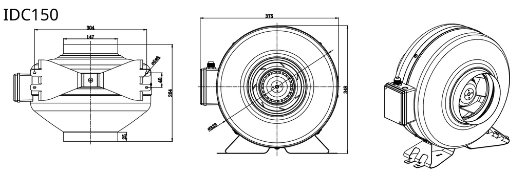 IDC150 – Odstredivý potrubný ventilátor s vysokým tlakom pre dlhé potrubia.